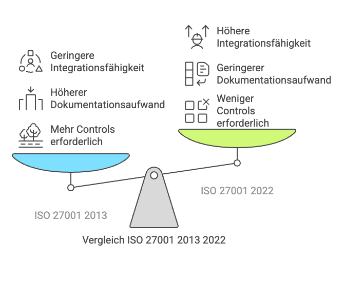 | Aspekt | ISO 27001:2013 | ISO 27001:2022 | Praktische Auswirkung |